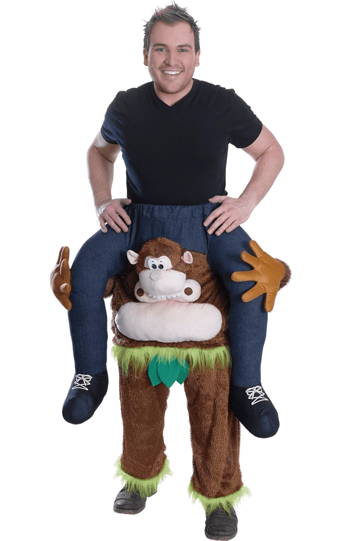 Create a hilarious illusion that will entertain everyone at your next party with our Piggyback Monkey costume. Featuring a plush all-in-one monkey suit with fake stuffed legs, monkey hands, face detailing and step-in legs, this outfit will have you and your friends going ape in no time.