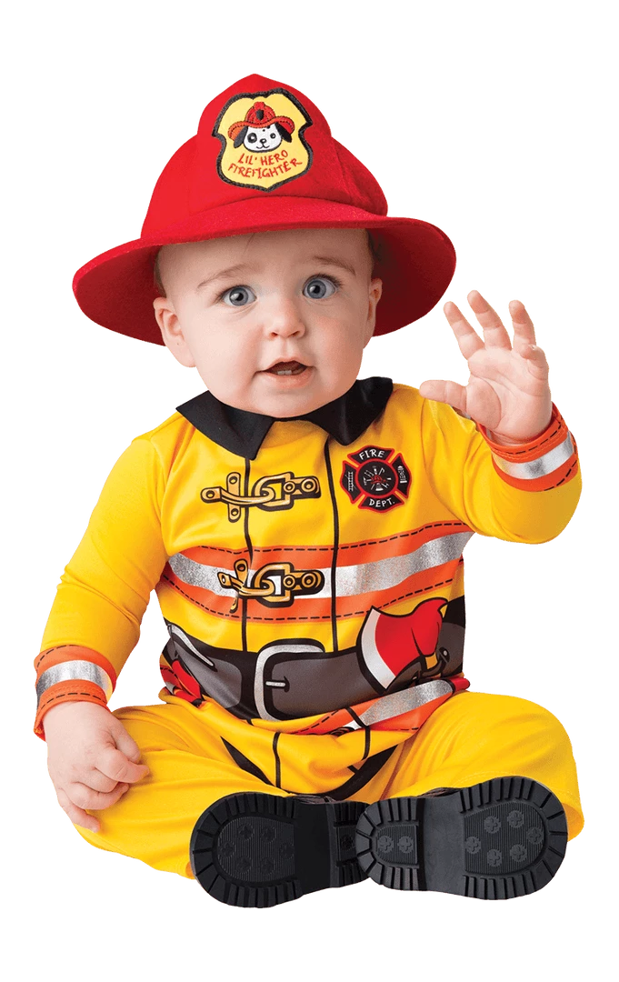 The baby Fireman Costume comes complete with a bright yellow jumpsuit, with detailing of buckles, a belt and his gear. No fireman would be complete without his red hat, which is also included with the outfit.