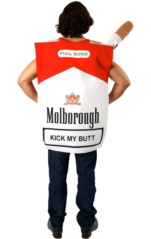 The Adult Cigarette Packet Costume is made up of a white and red ‘Molborough’ cigarettes tunic. It features the message ‘because I love a butt in my mouth’ printed in black on the front, as well as ‘kick my butt’ on the back. This hilarious but utter ridiculous costume is sure to bring entertainment all night long.