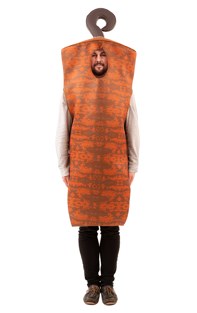 Everyone knows that the nation’s favourite food after a night out is a dirty, filthy Doner Kebab! Now you can dress up as this deliciously juicy pile of meat on your next lads night out in our exclusive Adult Doner Kebab Costume. Complete with the hook it hangs on, you can transform yourself in this kebab costume and get cannibalistic as you scoff your mouth with the delicious meat after the nights over. Now get yourself on the dance floor and show off all those prima-doner moves!