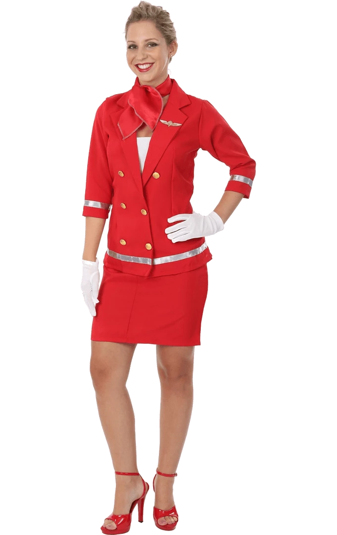Be prepared for take-off as you give out directions and push your trolley down the aisle in style, with our Womens Red Air Hostess Costume. All you need to do is suit up, grab your captain and get ready to board the party plane!