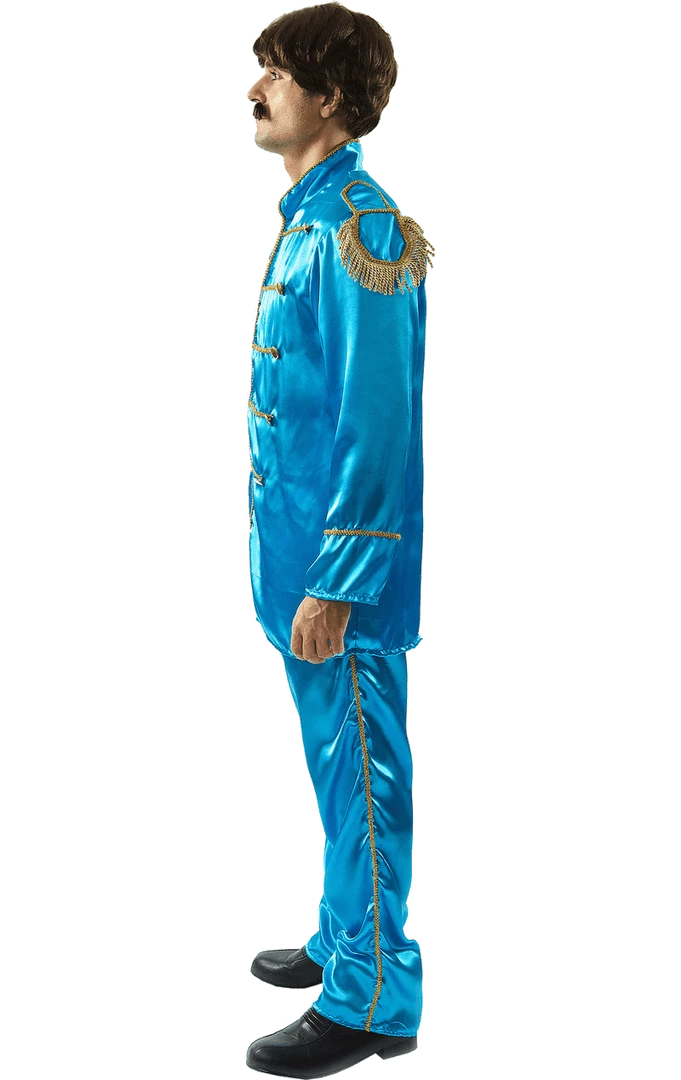 The Paul McCartney Beatles Costume is made up of a satin-style bright blue suit, with gold detailing down the centre, as well as gold tassels on the shoulders. This iconic costume will add an explosion of colour, making a statement as soon as you enter the party.