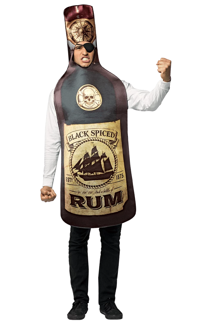 Arggg! A bottle of Rum to fill yer tum, thats the life for me! This Adults Rum Costume is perfect for those that love a good tipple but also drink like a pirate…glug, glug, glug!