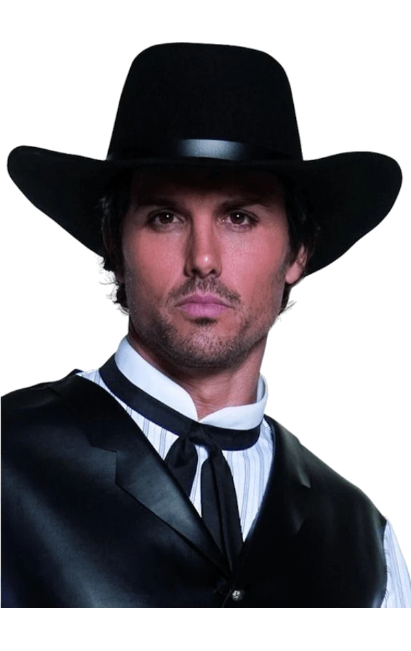 If you’re off to a rodeo, make sure you have the appropriate headwear to match your cowboy outfit. The Black Gunslinger Cowboy Hat for men features a black band across and high brimmed sides. So swing it around as you buck your bronco and get ready for a shootout at the next western fancy dress party hoedown.