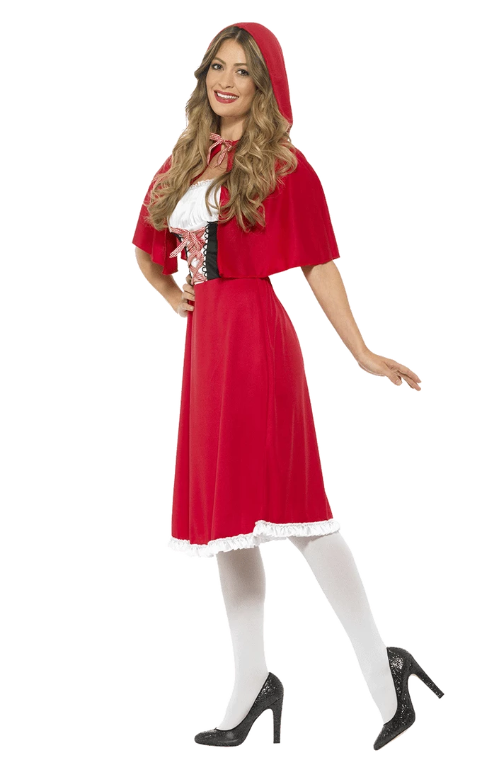 If you’re going to visit Grandma’s house wearing this outfit, be sure not to go it alone! The Adult Red Riding Hood Fairytale Costume is perfect for a fairytale themed party, and is even appropriate for teachers or parents this World Book Day. Make sure to have your wits about you, and double-check Grandma before entering her home in this red riding hood costume for women. This costume features a red midi dress with black and white bodice and gingham ribbon to lace it up. Pop the hood up on the satin capelet and you’re ready to head out into the woods – just beware of the Big Bad Wolf!