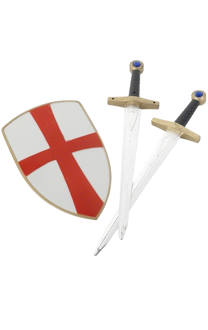 Stride into battle with the courage of a medieval warrior in our Knight Crusader Set! This set consists of two swords and a red and white shield. Swords measure approx 50cm from blade tip to end of the grip and the shield measures 30cm from top to bottom.
