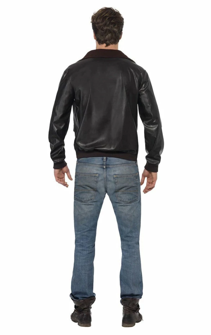 ** Mens Top Gun Maverick Jacket, although appears black in the image, is a deep shade of brown pleather with a soft fleece collar.** Transform yourself into Maverick, the coolest 80s aviator pilot of all time. Simply slip on this signature faux leather jacket and you’ll be all set to feel the need, the need for speed! Top Gun is an 80s movie classic and this official, licensed jacket is so versatile, wear it to army or uniform themed parties, as well as movie nights or 80s themed dos. It features a zip-up front and badges on the chest and left arm, including the American flag and the Top Gun logo