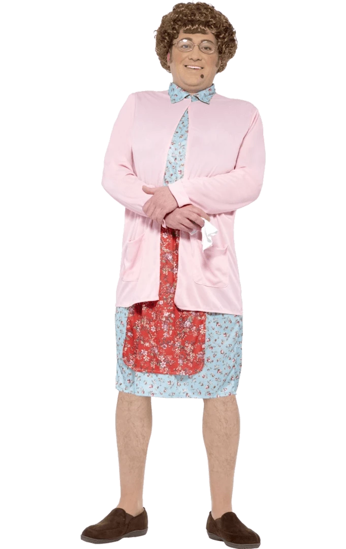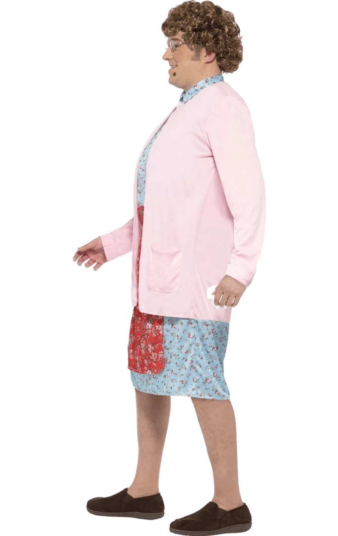 Transform yourself into the ultimate Irish matriarch in our officially licensed Agnes Brown costume of Mrs Brown’s Boys fame. No detail has been left out of this hilarious ensemble, from the signature pink cardigan, floral dress, hankie, wig and glasses through to the big brown chin mole – that’s nice!