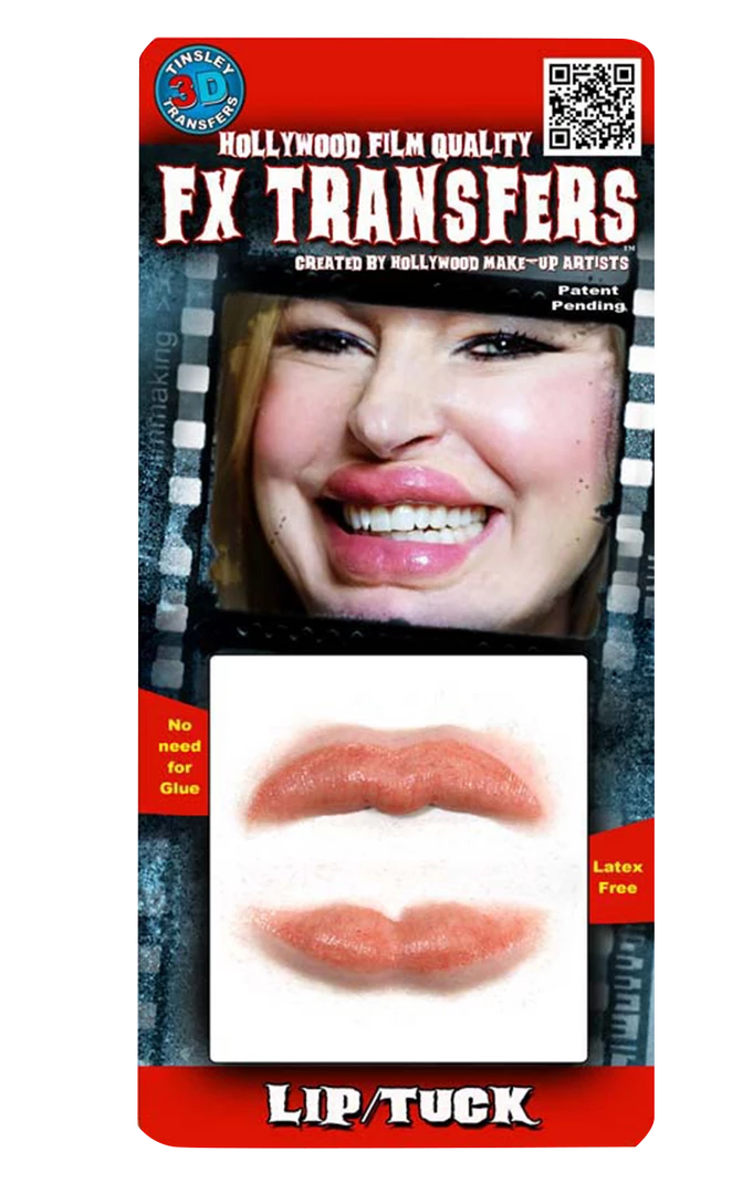 Going to a celebrity themed fancy dress party and want to look like a plastic fantastic work of wax art fresh out of surgery? Channel those scarily superficial heights of face modification with these very realistic Lip Tuck 3D FX Transfers and look like you could pass for a desperate for youth melting actress from tinseltown…