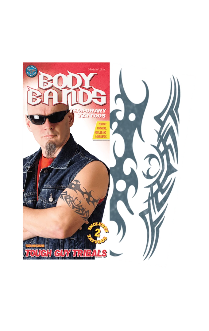 Want to look like a hard nut for that fancy dress party but don’t want to face up to the pain of a real inking? Need an easy alternative that will make you look rough around the edges and like you’re not someone to mess with? Get yourself the Tough Body Band Tattoo and start acting up straight away!