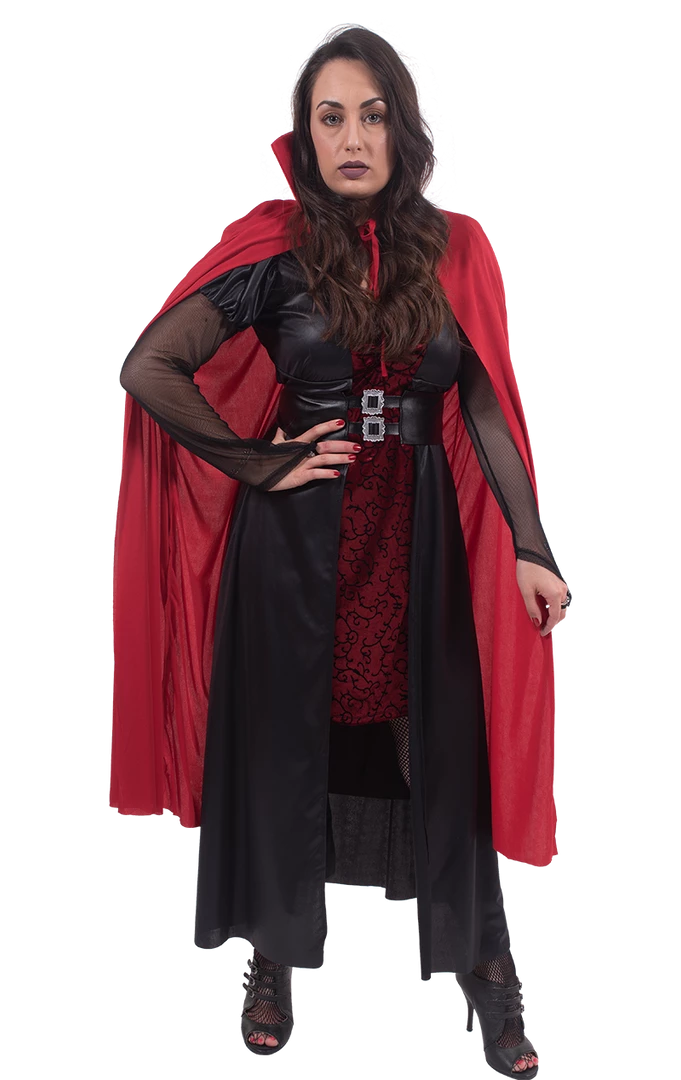 Check out this bright crimson coloured cape, perfect for flying, swooping, dramatic exits and lingering! Don your facepiece and drink some blood, it’s time to get this party started Halloween style!